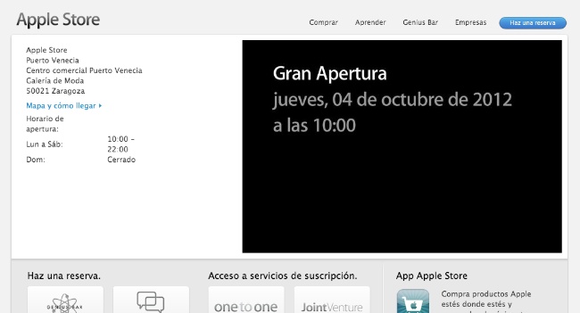 Apple acaba de anunciar mediante una nota de prensa a los medios confirmando lo que ya nos esperábamos: La Apple Store de Zaragoza será inaugurada este jueves 4 de Octubre a las diez de la mañana. Se hará en el centro comercial Puerto Venecia, y será la décima tienda oficial de Apple que abra sus puertas aquí en territorio español.
