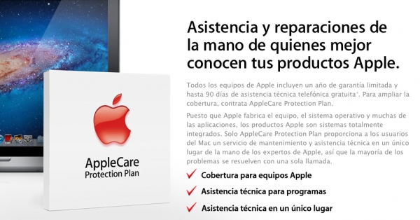 Apple al vender sus productos ofrece Soporte Técnico Gratuito durante 90 días y una garantía de un año. Con “AppleCare” se añadirían otros dos años la garantía, que pasaría a 3 años desde la fecha de compra, esta garantía adicional tiene un precio desde 40€ “para un iPod nano” a 179 “para el iMac”.