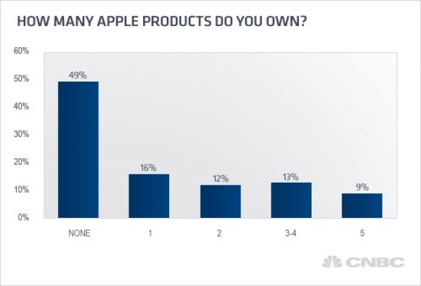 Una encuesta encargada por la CNBC rebela que más de la mitad de los hogares de EE.UU. posee un producto de la empresa de Cupertino, según CNBC’s All-America Economic survey. y uno de cada diez hogares que no posee ningún producto de Apple piensa comprar uno en el próximo año.