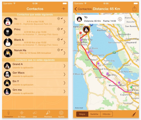 - Posibilidad de ver la ruta monitorizada de sus contactos hoy, ayer y antes de ayer.