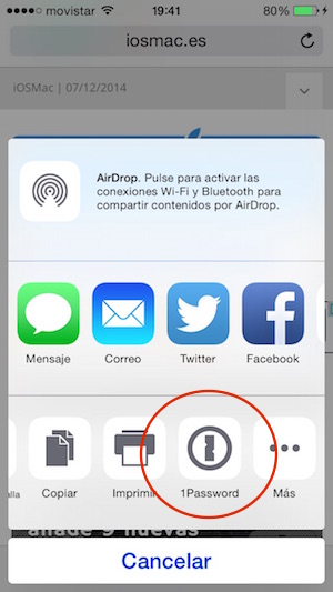 1Password es la aplicación que nos permite almacenar en su interior, en lugar seguro, todas nuestras contraseñas para el acceso a sitios web. Después de almacenar la contraseña de Facebook, Twitter o cualquier otro sitio web, podemos llamar a la extensión de 1Password en Safari para rellenar automáticamente el nombre de usuario y contraseña y acceso con un solo toque a todos los sitios que anteriormente hemos guardado.