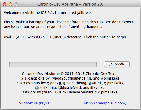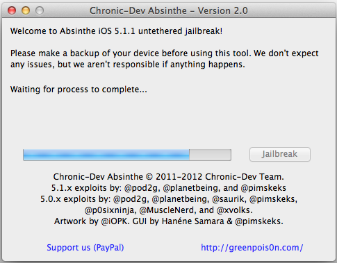 Después de mucho trabajo, Absinthe 2.0 ha visto por fin la luz, con el podemos hacer Jailbreak a dispositivos iOS 5.1.1. Ha sido un gran esfuerzo de colaboración entre Chronic-Dev Team y Dev Teams (Jailbreak Dream Team).