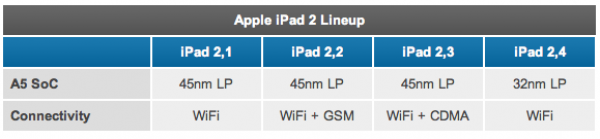 Con la llegada del nuevo iPad Apple hizo unos cambios en el iPad 2, concretamente en la CPU A5 de doble núcleo, esta pasaba de 45 nm a 32 nm. Esto permite reducir costes gracias a que se fabrican más CPUs con el mismo material, también fabricar un procesador que consume menos energía por lo que se calienta menos.