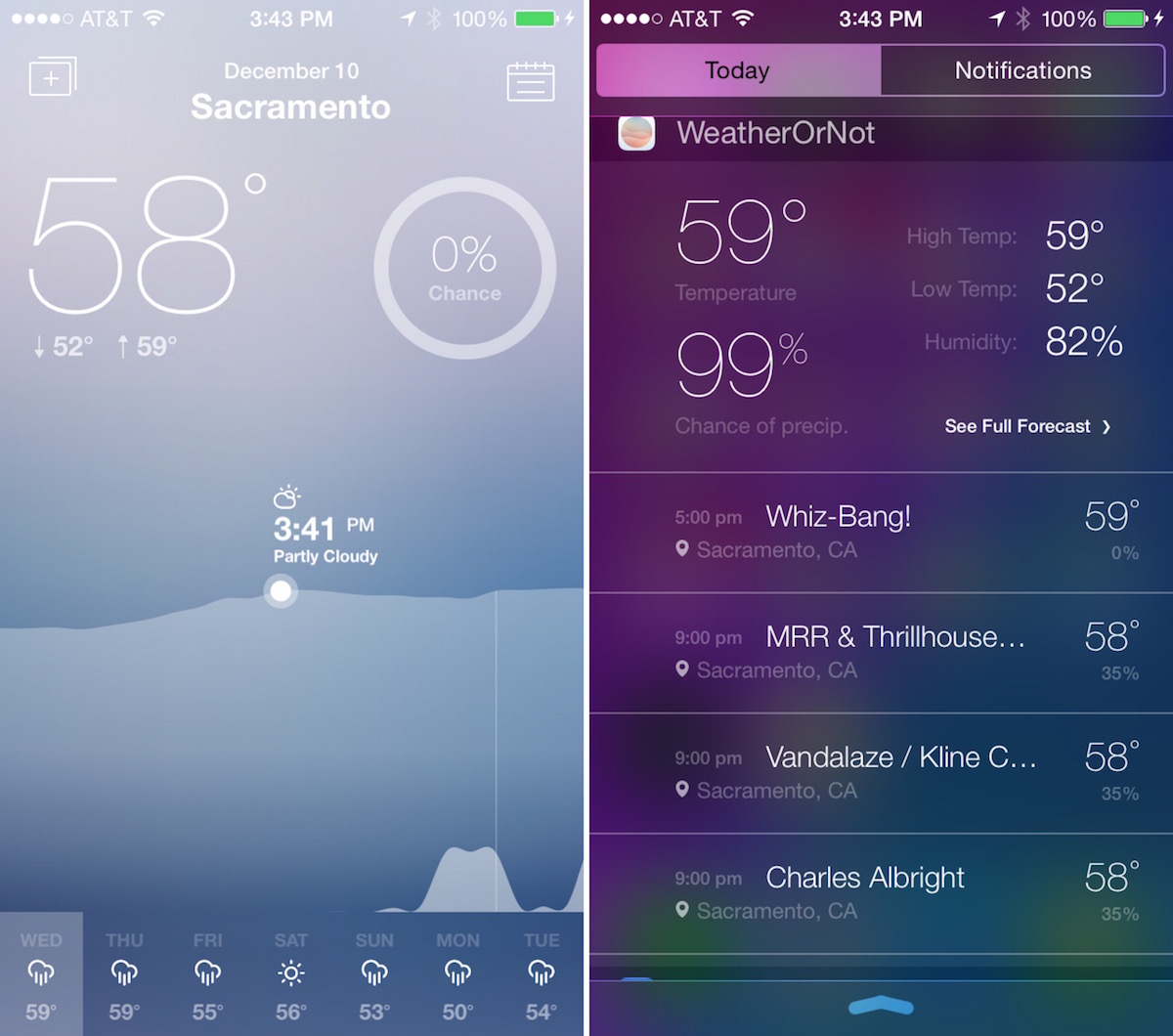 Cada día de invierno, siempre dudo en que ropa ponerme para no pasar frío. Esta aplicación tener una idea del tiempo que hará durante los eventos específicos que planea asistir. Se conecta a su aplicación Calendario y te muestra el tiempo para cada evento programado en la ubicación que tenga asignado el evento. Programe alertas de tiempo para obtener las notificaciones antes de salir a la cena de empresa o lo que tenga programado. La aplicación también cuenta con un widget en el Centro de Notificación para que pueda ver todas las citas, y la previsión esperada en la pantalla de bloqueo.