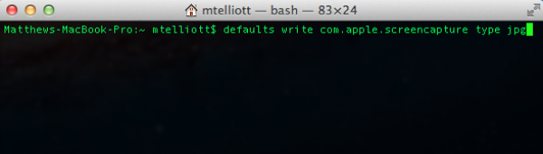 Para Cambiar el formato del fichero que por defecto viene definido en formato PNG en OS X, solo tenemos que escribir en el terminal el siguiente comando “defaults write com.apple.screencapture type jpg”, para jpg o podemos cambiar esto por “BMP, GIF, TIFF o PDF”. Para que estos cambios se realicen debes de desconectarte de tu cuenta de usuario y volver a identificarte para que se tomen los nuevos valores..