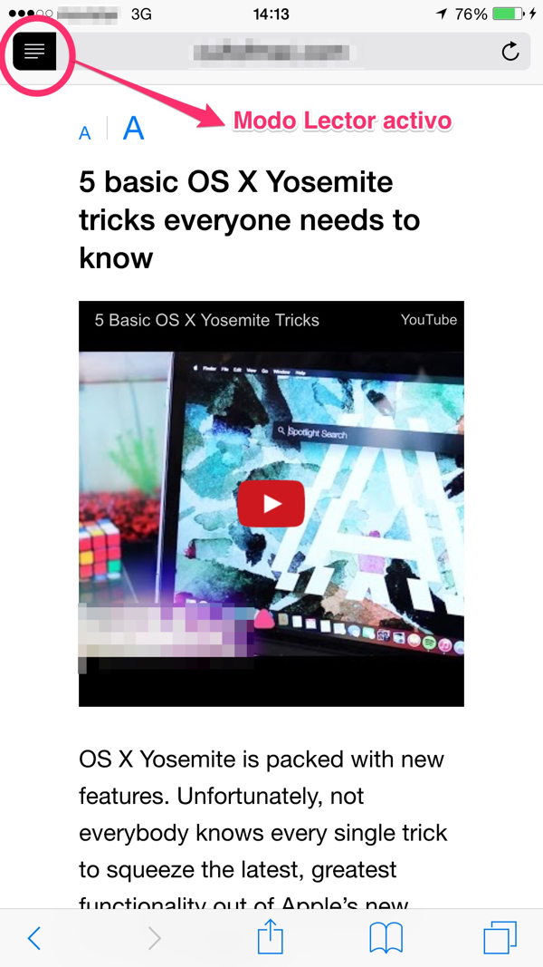 Es especialmente útil el modo lector en iOS porque normalmente por el tamaño del texto es mas difícil identificar el texto interesante y las imágenes importantes, así que, el modo lector, lo hará por nosotros y nos lo pondrá todo de forma lógica y atractiva.