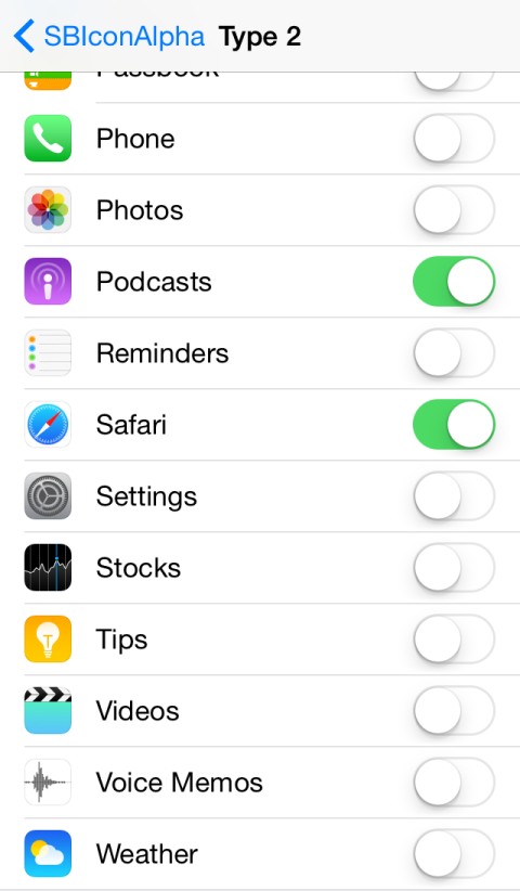 SBIconAlpha: Este tweak permite establecer la transparencia de los iconos de aplicaciones, lo puedes descargar sin costo de la repo de BigBoss.